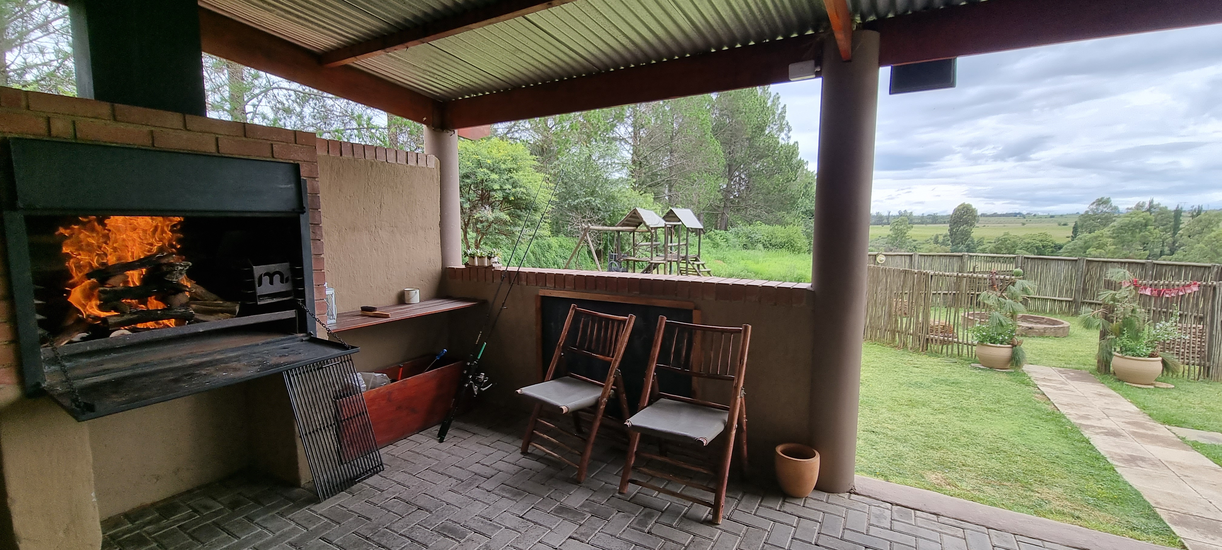 Guests are treated to a lovely home of 200 square meters with a fully-furnished kitchen with a coal stove for some quality time with friends or family. The kitchen and living room provides more than enough space to relax in-front of the fireplace. Find a spot on the lovely patio next to the braai while keeping an eye on the kids!
