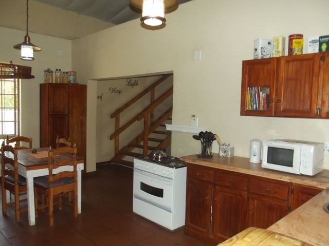 Guests are treated to a lovely home of 200 square meters with a fully-furnished kitchen with a coal stove for some quality time with friends or family. The kitchen and living room provides more than enough space to relax in-front of the fireplace. Find a spot on the lovely patio next to the braai while keeping an eye on the kids!